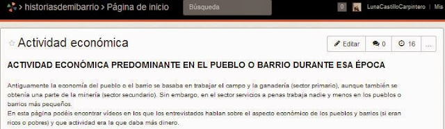 Wiki Aprendemos con TIC. En esta wiki hay páginas que se relacionan con el lugar donde se ubica el colegio: Canarias, y trata temas concretos de esa zona, por lo que dicha wiki se podría relacionar con el entorno del barrio.